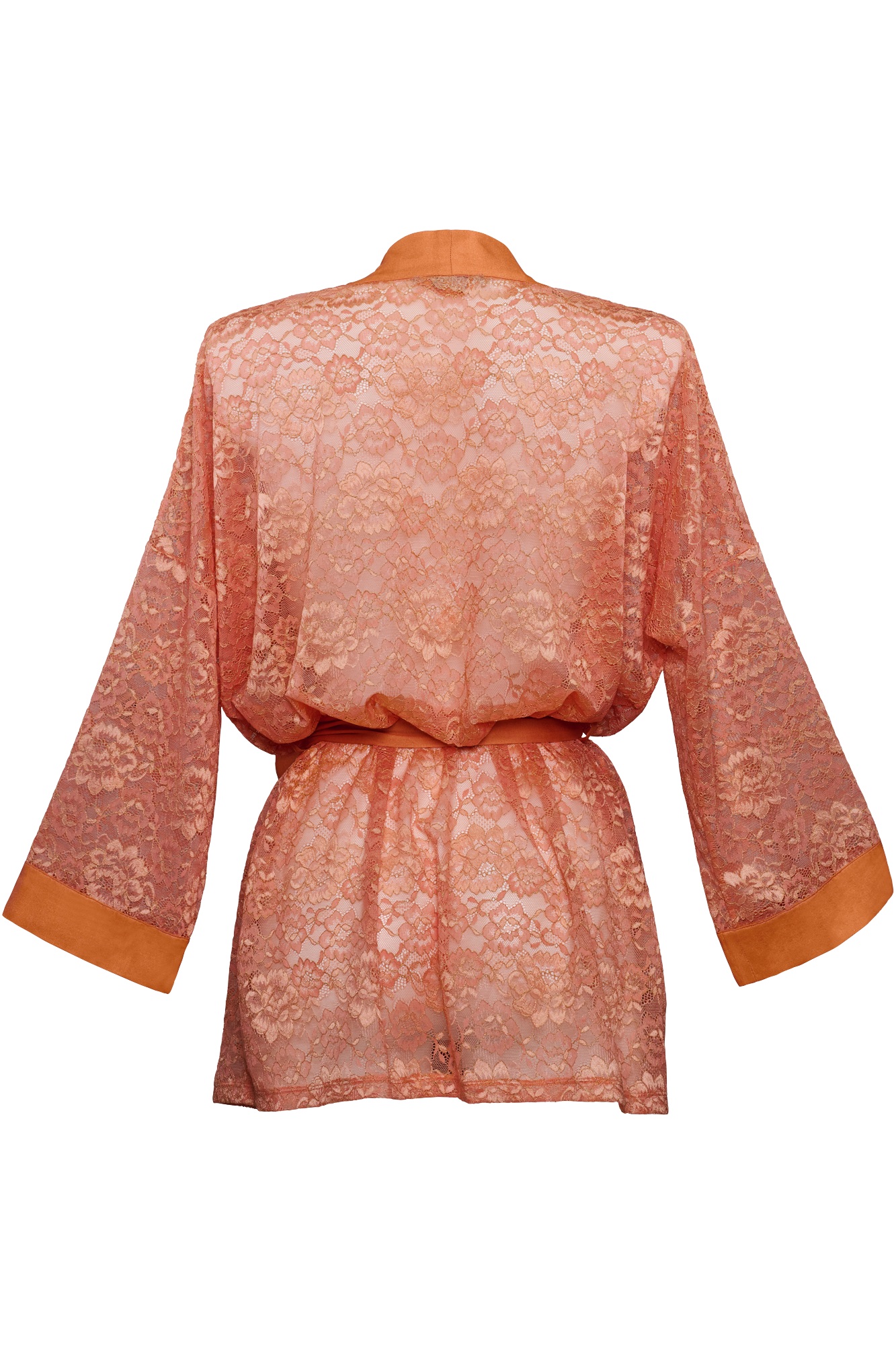 Upea pitsinen kimono! Hieman läpinäkyvä ja kultalangalla kirjailtu pitsi yhdistettynä leikkisiin nauhoihin on upea kokonaisuus.