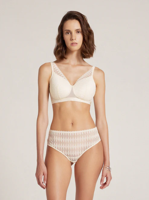 Megamin taskulliset, kevyesti topatut liivit sopivat niin proteesin käyttäjälle kuin kaarettoman liivin ystävälle. Pehmeä pitsi on kaunis, mutta myös sopivasti peittävä.