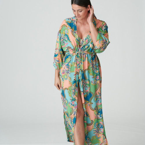 Celaya -sarjan kimonokaftaani on 100% viskoosia, joten tämä on monikäyttöinen ja näyttävä kesävaate.